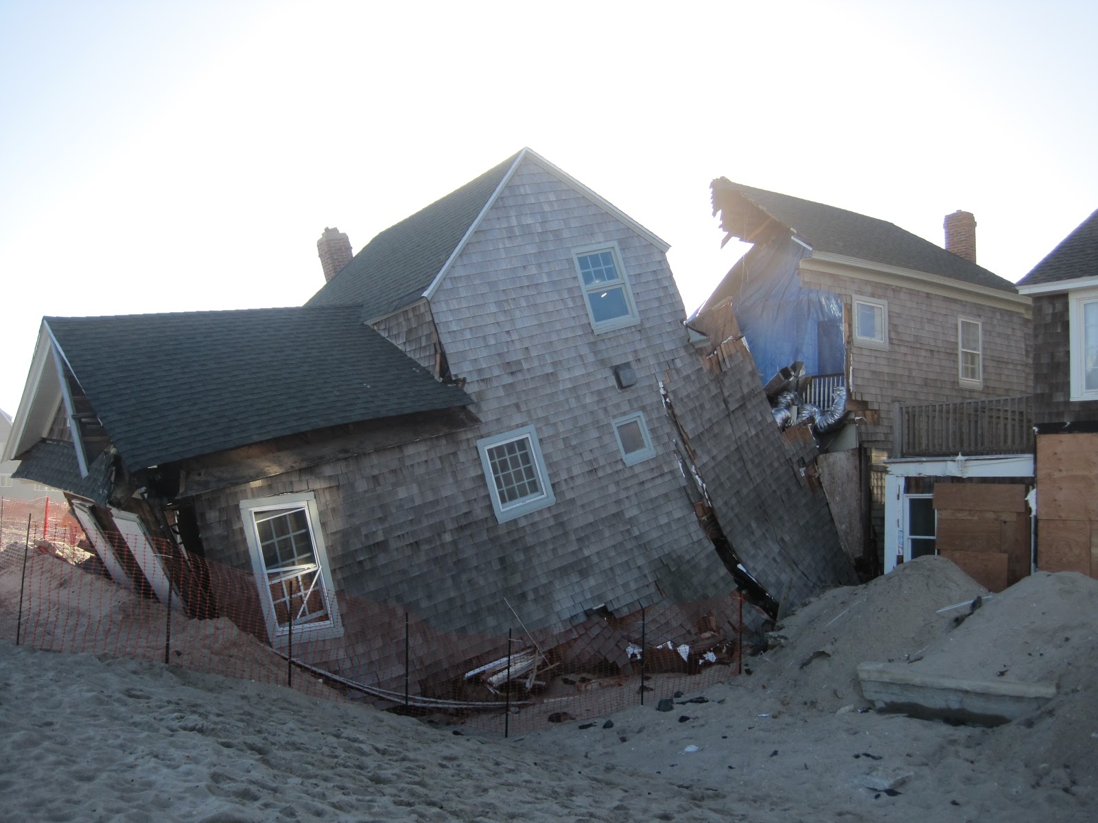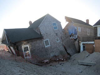 The beach now runs through all these megamillionaires' backyards. Most looked pretty battered. Many were just gone. |